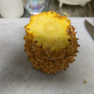 お味はと言うと、最後は大きくなるように水をたっぷり上げたせいか、水っぽいパイナップルって感じでした。でも、2020年から育てて4年かかりましたが近畿地方の気候でもできるんだなぁと感心しました。