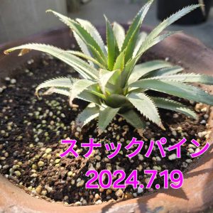 その収穫したパイナップルに脇芽が出てたのでその脇芽と、購入したスナックパイン🍍で挑戦中![]()